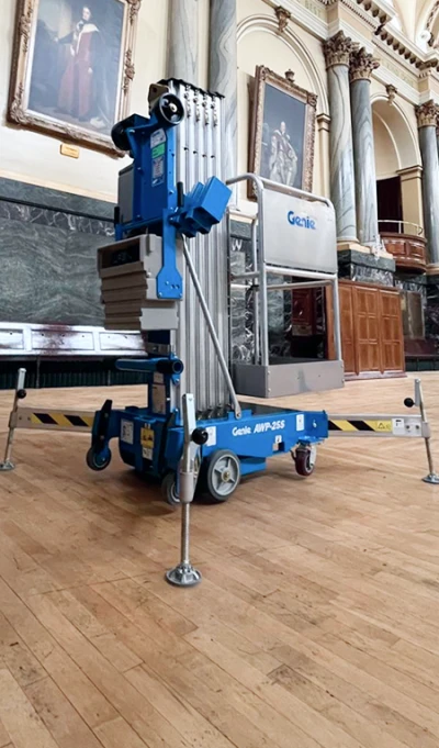 Yes, due to the machines being lightweight and compact fit, they can be used for a variety of applications, such as hospitals, sports halls, and theatre stages. Always just check the floor load against the specification sheet to ensure safe operation. Contact us and we will recommend the best-suited Genie product for you.