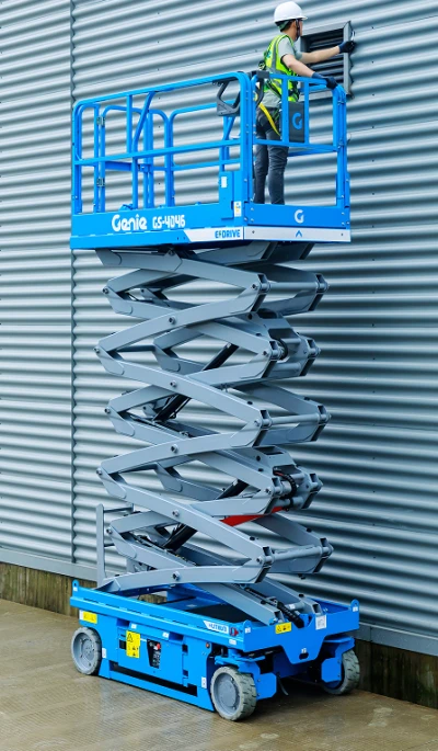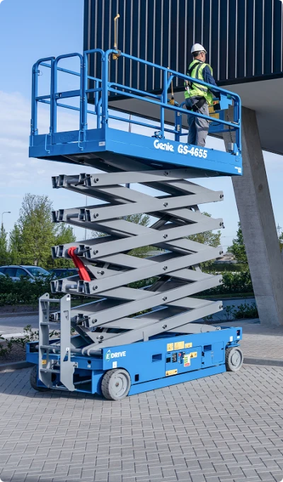 Electric Genie Scissor lifts are quiet, zero-emission machines, making them the perfect choice for indoor noise-sensitive areas, equipped with long-lasting batteries. Rough terrain scissor lifts, such as the GS-3369RT, are built for outdoor jobs with uneven ground. Consider your work environment and ground conditions to get the best-suited model for you.