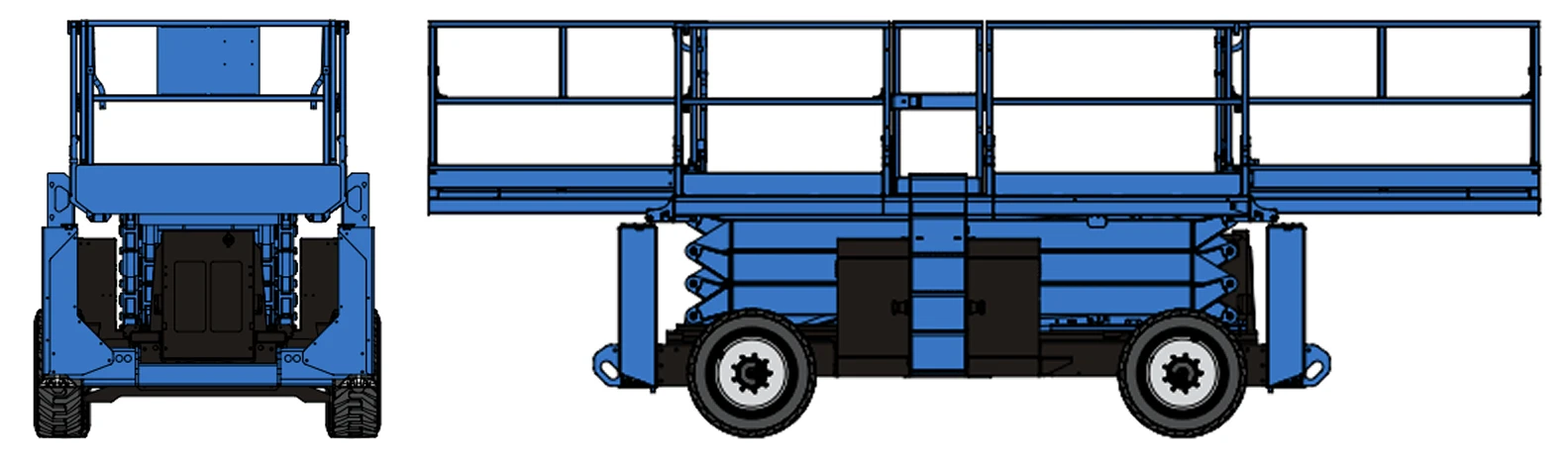 With its excellent 40% gradeability, the GS-5390 RT will climb ramps and slopes without an issue and cross over any obstacle in its way. Its double 1.52m manual roll-out deck extension allows for more platform space, enough for up to seven operators and equipment. The platform has fold-down guardrails for simple maneuvering helping when need to get into height restricted areas.
