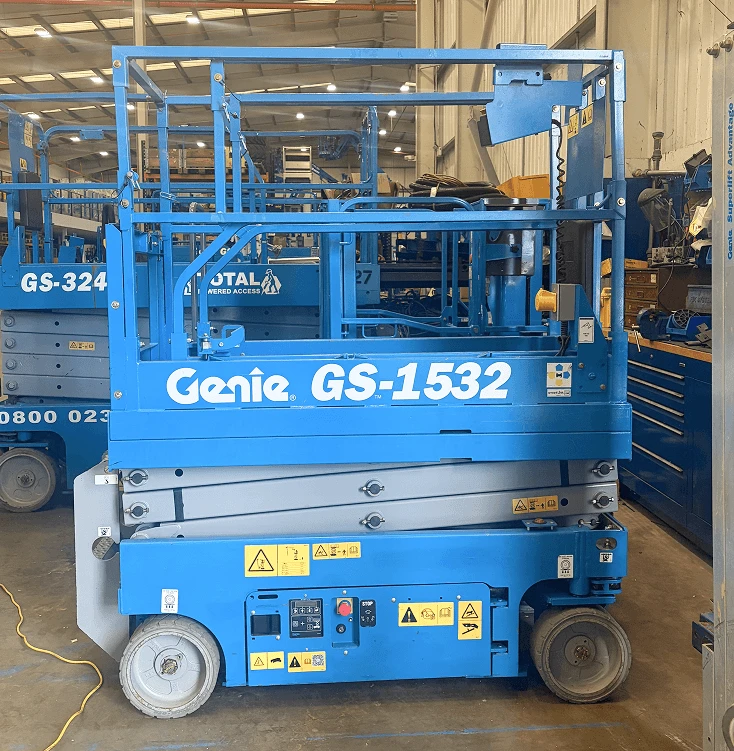 The Genie® GS™-1532 slab scissor lifts offer quiet electric operation in indoor and outdoor construction, maintenance and installation applications on firm, level surfaces and are compact and easy to manoeuvre.