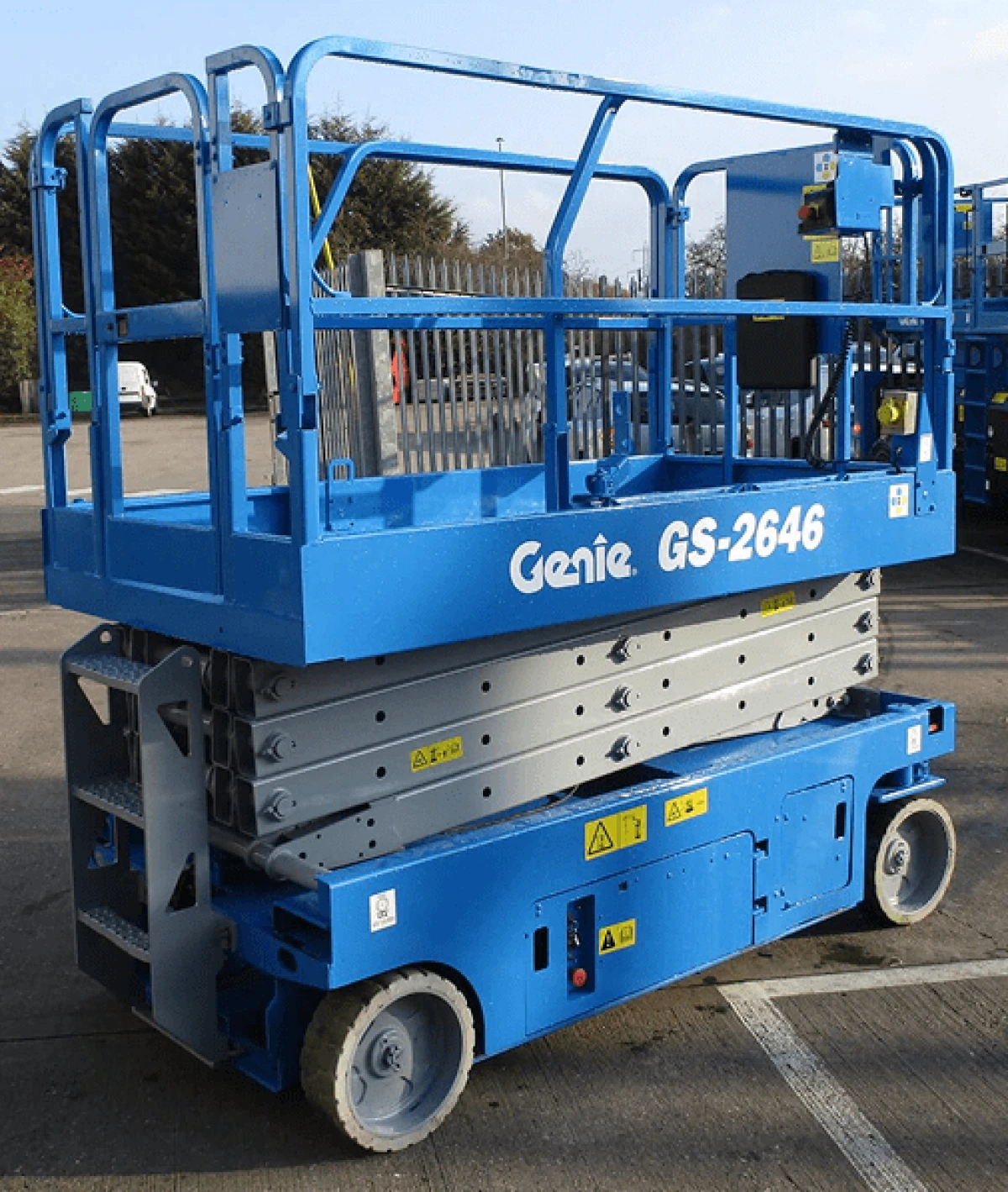 The quiet, electrically-powered Genie® GS™-264632 slab scissor lifts are excellent for indoor and outdoor construction, maintenance and installation applications on firm, level surfaces.