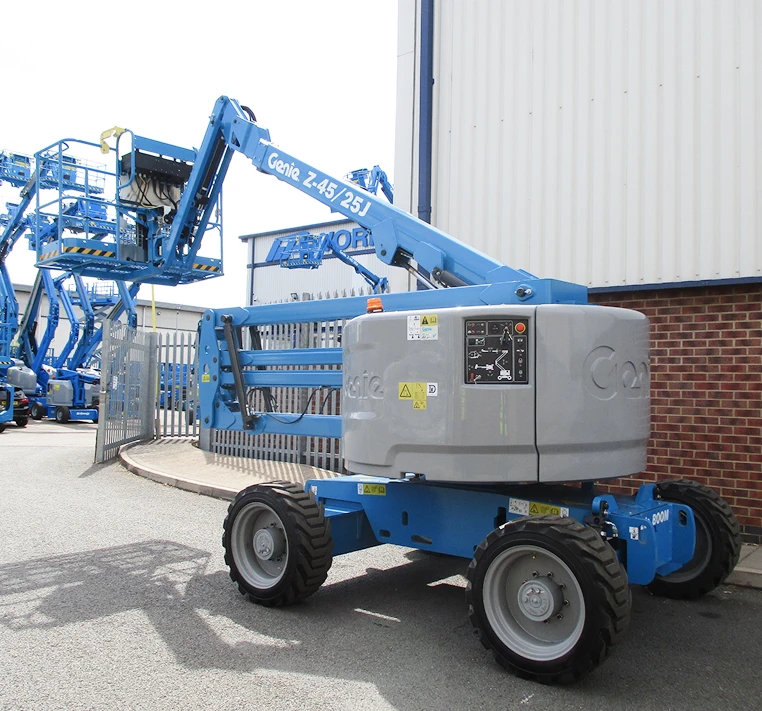 Ideal for outdoor construction and industrial applications, the Genie® Z®-45/25J RT articulating boom lift provides lifting versatility with a combination of up, out and over positioning capabilities with outreach that’s second to none. This model’s tight turning radius and zero tailswing make for easy manoeuvring in confined work areas.